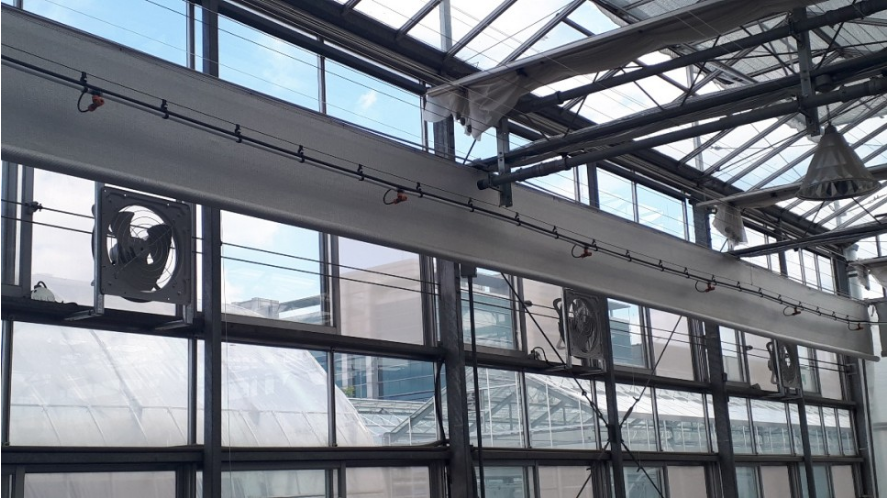 온실 내 냉방 장치의 사용으로 여름철 온실 내부의 온도를 낮출 수 있지만, 경제적인 측면에서 불리합니다.